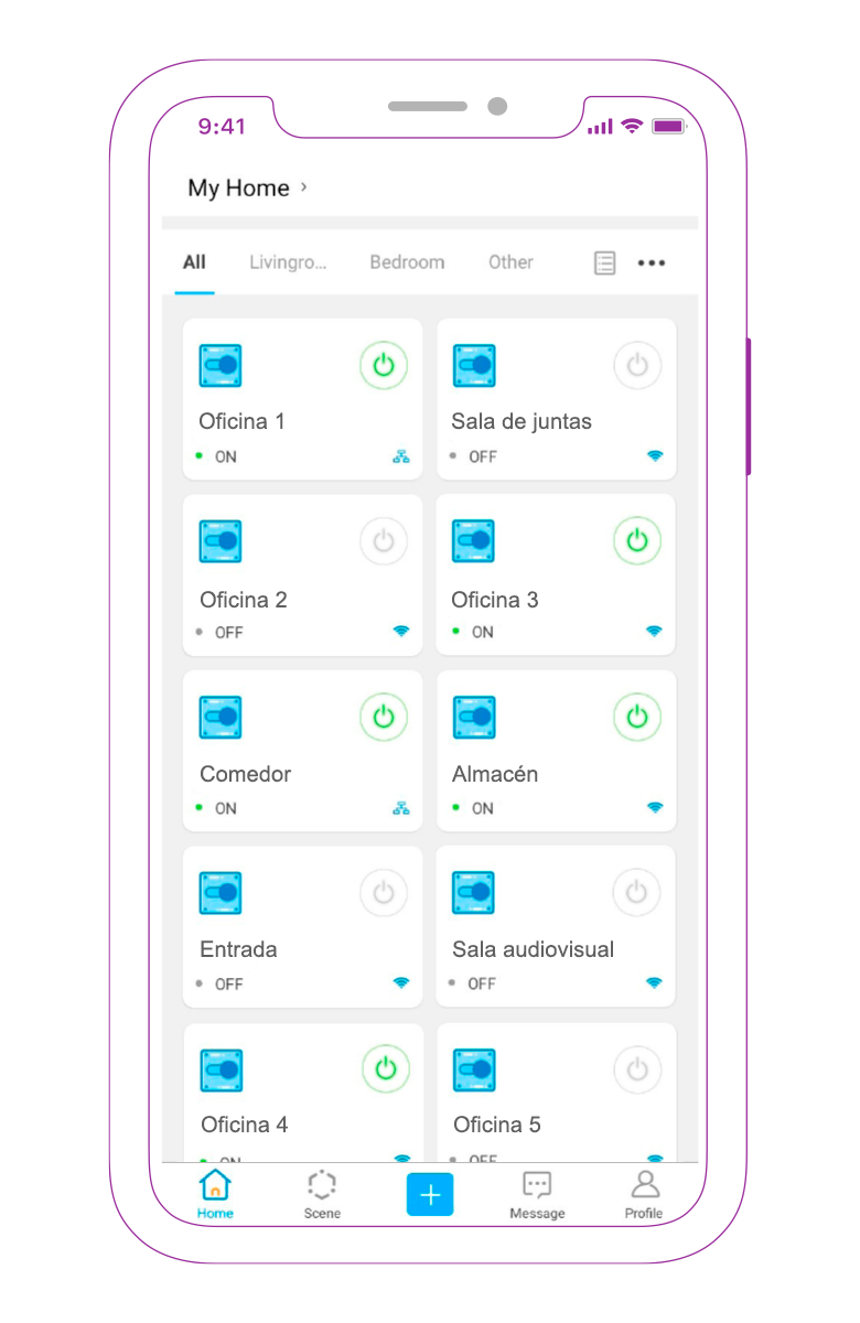 A través de la aplicación móvil podrás controlar todos los generadores de ozono que poseas, administrándolos por zonas, oficinas o habitaciones. También es posible crear rutinas para la desinfección de los espacios en ciertas horas y días.